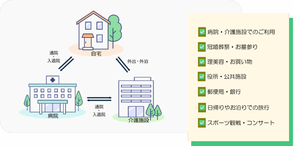 ご利用される方に付添われる方の座席も複数ございますので複数名での同乗も可能です。